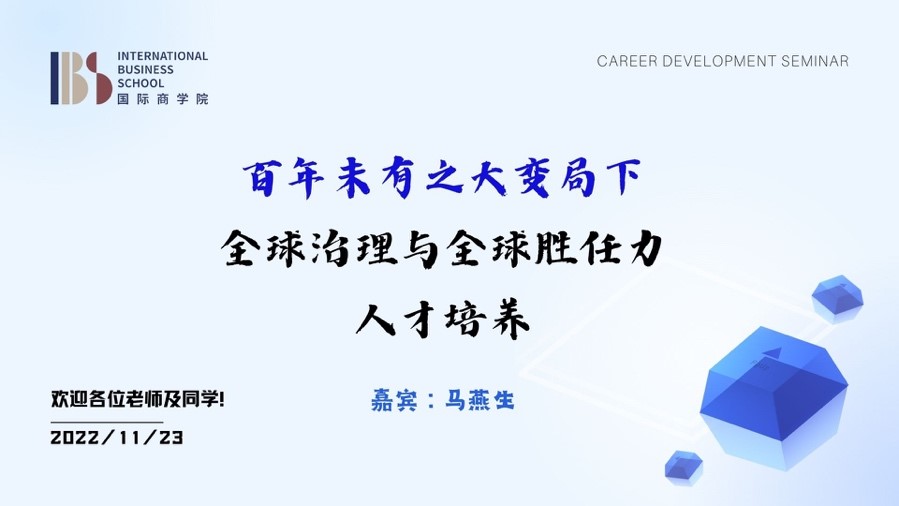 With great honour, IBS.BFSU invited Mr.MA Yansheng, former Minister Counsellor of Chinese Embassy in France,vice-president of BFSU,Chinese deputy permanent presentative at UNESCO, to gave IBS.BFSU stduents a webinar on Global Governance.