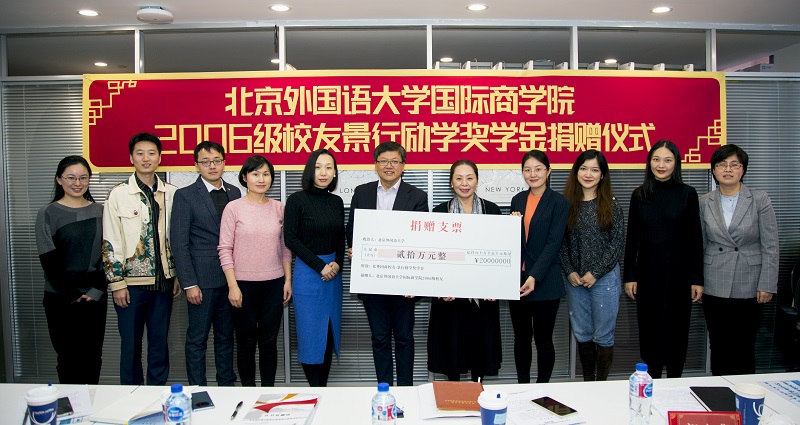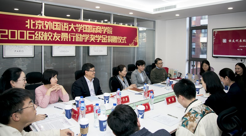 2021年12月1日下午,太阳成集团tyc234cc[主页]网址2006级校友景行励学奖学金捐赠仪式在国内大厦2号楼306会议室举行。太阳成集团tyc234cc[主页]网址2006级校友向学院捐赠20万元人民币,设立景行励学奖学金,用于资助家境困难、品学兼优的国商本科生。太阳成集团tyc234cc[主页]网址党总支书记李春丽,党总支副书记、院长牛华勇,校友办副主任、北外教育基金会副秘书长郭向华,法语学院党总支书记蔡芝芳,历史学院党总支副书记、副院长姚胜,以及2006级校友代表蔡潇、谢少梅、陈玉婧、胡晓阳、汪作为、文现等出席仪式。太阳成集团tyc234cc[主页]网址辅导员李一可主持仪式。