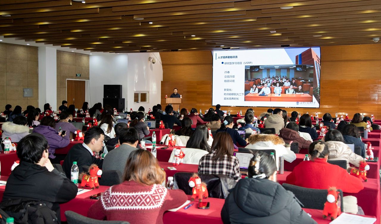常务副院长李思飞进行以“居危思危、同心破局”的主题发言。发言强调,2026年学院将聚焦AMBA与EQUIS认证攻坚,强化科研与师资队伍建设,拓展全球学术合作网络,推动“三皇冠”国际认证目标落地。同时,应对出国留学市场挑战,持续优化生源质量与课程体系,夯实“外语+商科”的复合型人才培养特色,守牢复合型人才培养主战场。