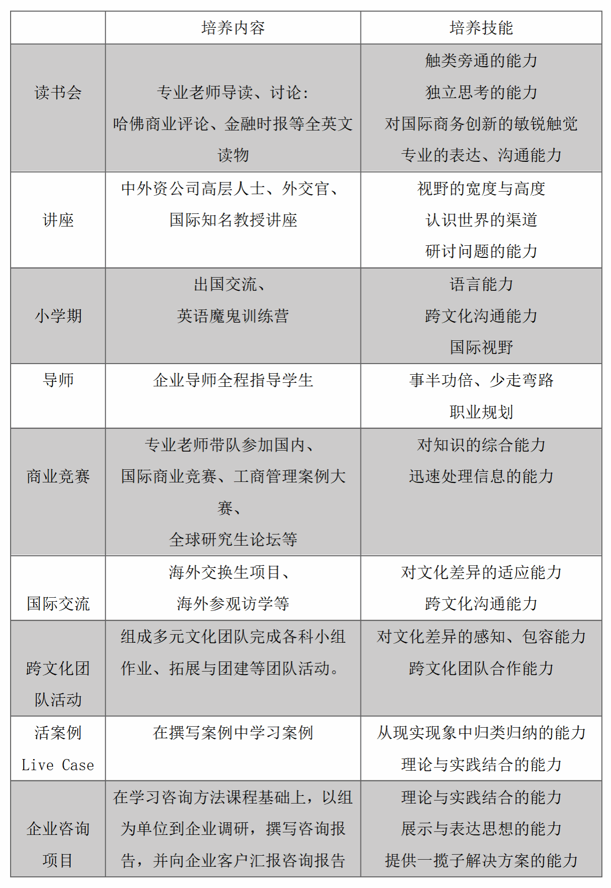 > 培养面向科技时代和多元文化环境,具有卓越的跨文化管理能力的企业家