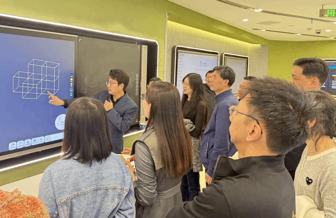随后,参访团队前往科大讯飞人工智能展厅开展实地参观。展厅内,多语种AI透明屏、智慧医疗助手、星火大模型等“黑科技”产品逐一亮相,工作人员详细演示了产品的功能与应用场景,让与会师生直观感受到了人工智能技术从实验室走向实际应用的生动实践。